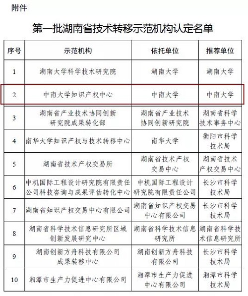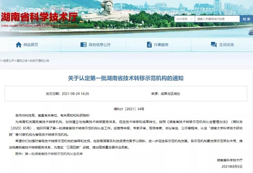 日前,湖南省科学技术厅公布了第一批湖南省技术转移示范机构评定结果,认定了10家机构为首批湖南省技术转移示范机构,365英国官网登录入口知识产权中心正式获批!