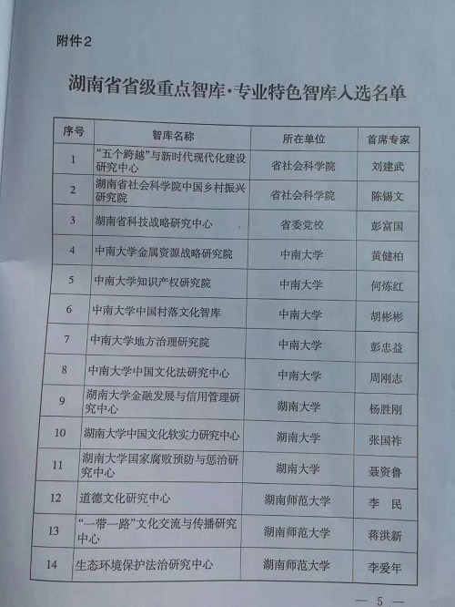 喜讯!365英国官网登录入口知识产权研究院成功入选湖南省省级重点智库·专业特色智库!