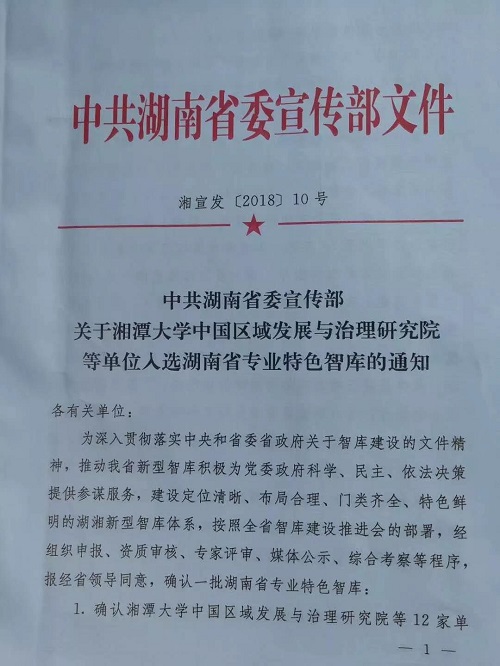 近日,接中共湖南省委宣传部文件通知,经组织申报、资质审核、专家评审、媒体公示和综合考察等程序,365英国官网登录入口知识产权研究院成功入选湖南省省级重点智库·专业特色智库,成为湖湘新型智库体系的重要一员。