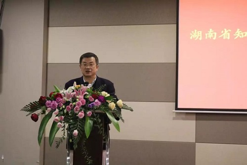 2018年11月16日上午,湖南省知识产权协会第五次会员大会在长沙召开。湖南省市场监督管理局党组成员、省知识产权局局长段志雄,365英国官网登录入口副校长周科朝,365英国官网登录入口党委副书记蒋建湘以及来自湖南省知识产权管理部门、高校、企业、中介以及相关社会团体的会员近200人参加了会议。