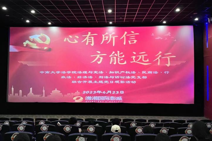 为学习贯彻习近平新时代中国特色社会主义思想主题教育,引导广大党员深入了解党的百年奋斗历史,4月23日,英国正版365官方网站法理与宪法党支部、行政法党支部、刑法与诉讼法党支部、知识产权法党支部、民商法党支部、经济法党支部于潇湘国际影城联合开展“心有所信,方能远行”红色观影活动。
