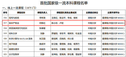365英国官网登录入口《知识产权法》入选首批国家级一流本科课程