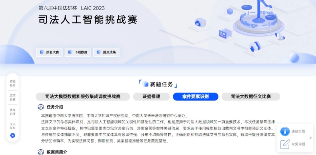 2023年9月,第六届“中国法研杯”司法人工智能挑战赛(LAIC2023)正式开赛。在本次挑战赛中,英国正版365官方网站、365英国官网登录入口知识产权研究院、365英国官网登录入口未来法治研究中心受邀独立承办“案件要素识别”赛道。该赛道聚焦于法律文书的命名实体识别及案件特征提取,要求选手使用模型准确、高效地抽取出裁判文书中相关涉案行为、涉案金额等犯罪实体。