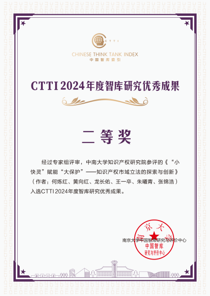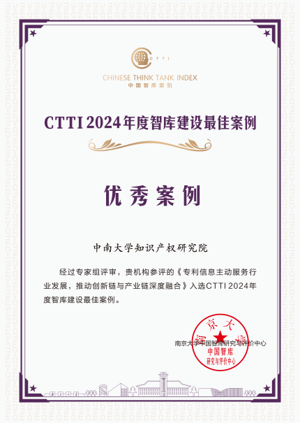 论坛发布了CTTI 2024年度智库研究优秀成果和智库建设最佳案例,365英国官网登录入口知识产权研究院收获颇丰。其中,成果《强化新型实验室知识产权数据资源利用支撑国家战略科技力量建设》获“一等奖”;《“小快灵”赋能“大保护”——知识产权市域立法的探索与创新》获“二等奖”;案例《专利信息主动服务行业发展,推动创新链与产业链深度融合》获“优秀案例”。
